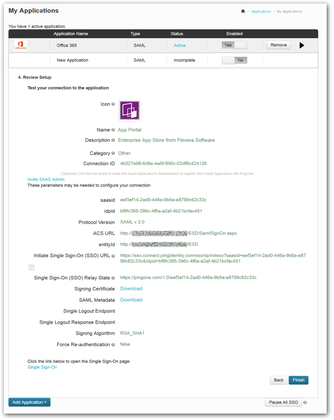 Review your settings and click Finish. App Portal should now appear in your list of active applications.