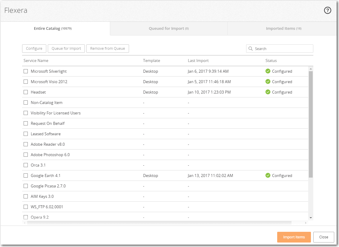 Flexera Software has a partnership with BMC, and therefore BMC MyIT offers a Flexera Connector option in its user interface.
