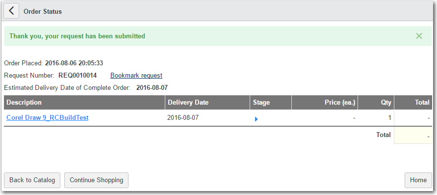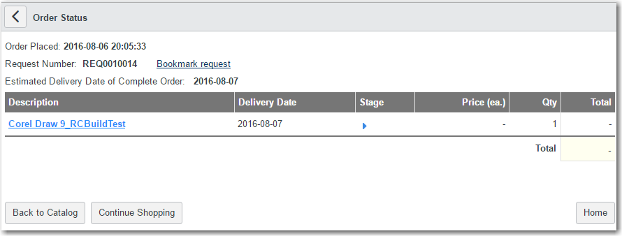 Click on the Number of the request you just submitted. The Order Status page is displayed.