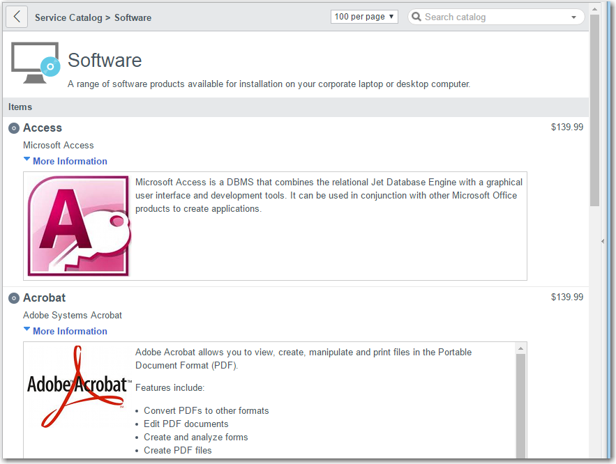 Click Software. The Service Catalog > Software page opens.