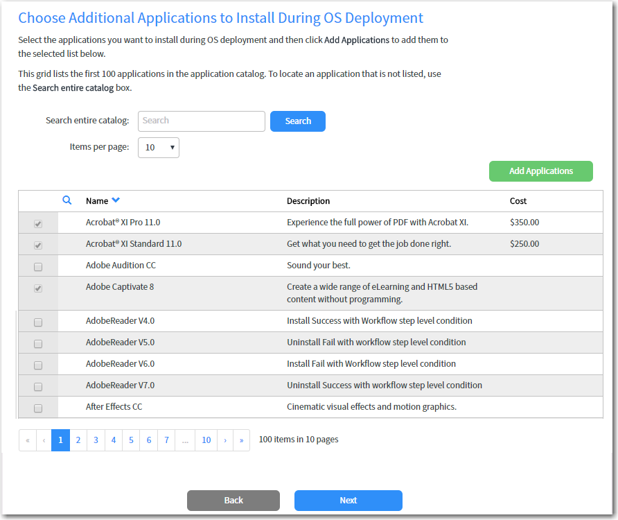 - Select the applications that you want to migrate and then click Next. The Choose Additional Applications to Install During OS Deployment panel opens. Applications that have already been selected in previous panels are already selected and cannot be unselected.