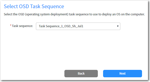 - Click Next. The Select OSD Task Sequence panel opens.