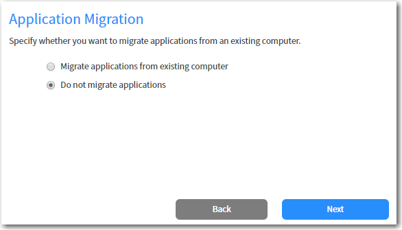If you want to migrate applications from an existing computer to the target computer, select the Migrate applications from existing computer option. If you select this option, the Select computer field is displayed, where you are prompted to search for the existing computer.