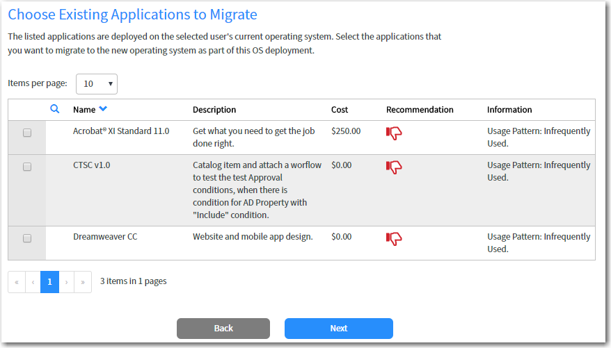 Search for an existing computer (if desired), and then click Next. The Choose Existing Applications to Migrate panel opens, listing the applications installed on the specified existing computer.
