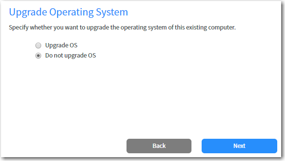 If you only want to migrate applications or add additional applications to the existing computer but do not do not want to upgrade its OS, select Do not upgrade OS.