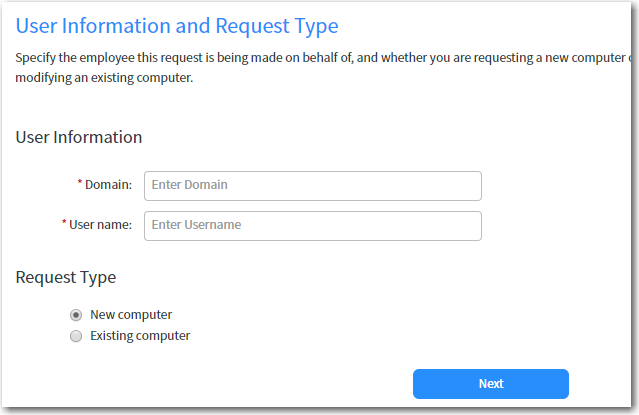 Under Request Type, select Existing computer.