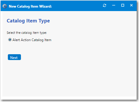 Click Add New Alert Action Catalog Item. The New Catalog Item Wizard opens.