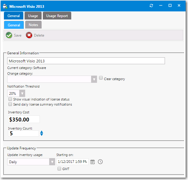 Select the Send daily inventory summary notifications option if you wish to include this inventory item in the daily license summary report that is emailed to the License Administrator.