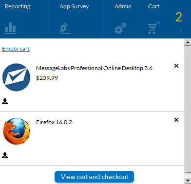 To remove an item from the cart, click the X in the top right corner of the catalog item. To empty the entire cart, click Empty cart.